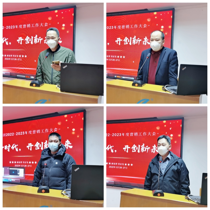 营销中心营销总监陈翠作《营销工作总结》报告,首先总结2022年营销工作的情况、亮点和不足,同时作出2023年工作计划与目标,要求大家要落实六大坚定和做好五大坚持,最后介绍和展示了新产品。