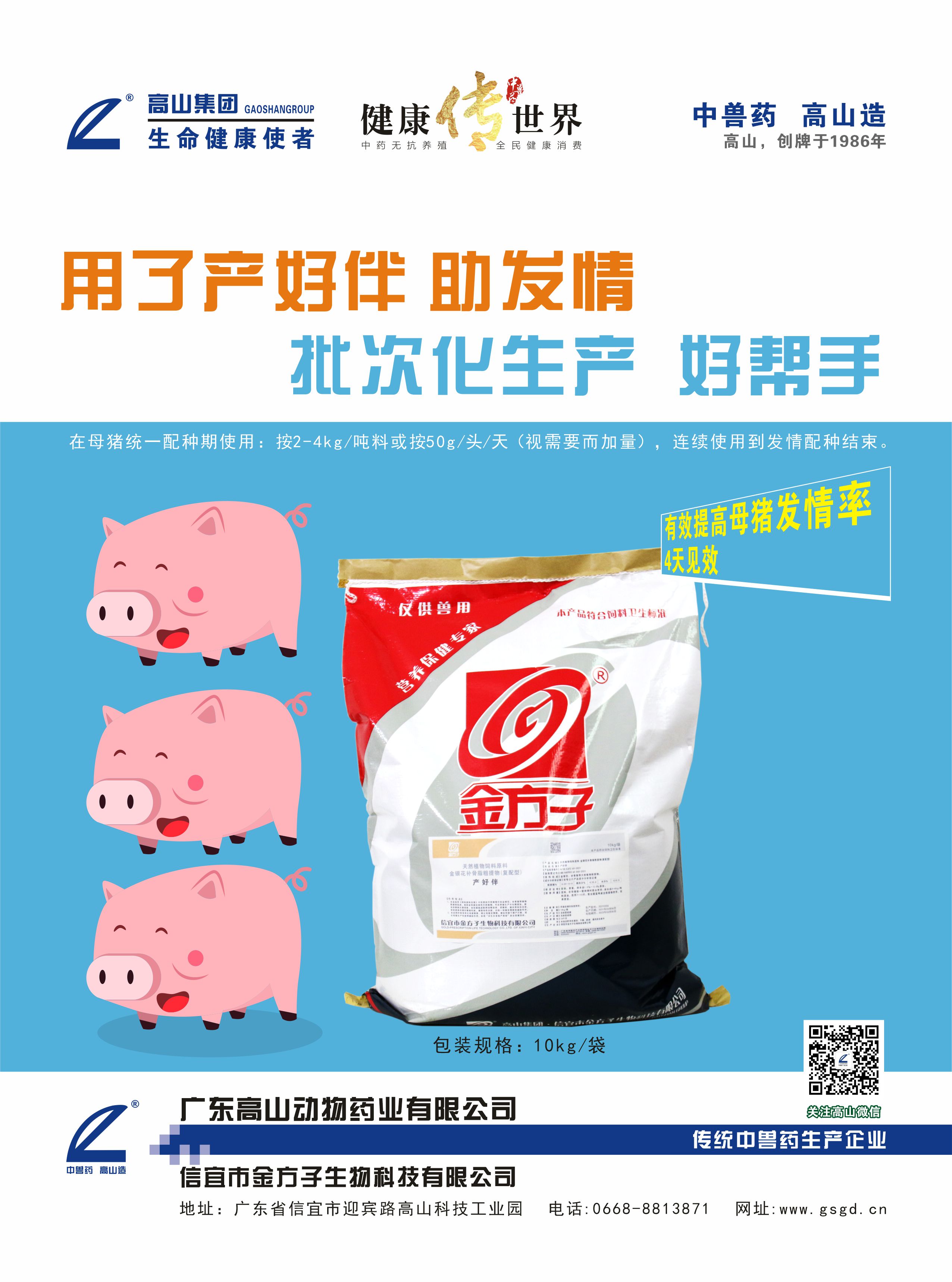 中兽药,高山造。高山,创牌于1986年,始终坚持走中兽药著名品牌的发展道路。从治疗到预防又到保健,解除畜禽亚健康,提高生产性能,降低生产成本,改善肉的品质,提高效益养殖。93年面市侯炏净,94年面市强力粤威龙,正冠乐,高山大巴,高山粤威龙,还有料磺系列等等。
