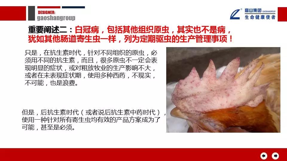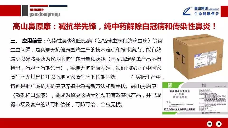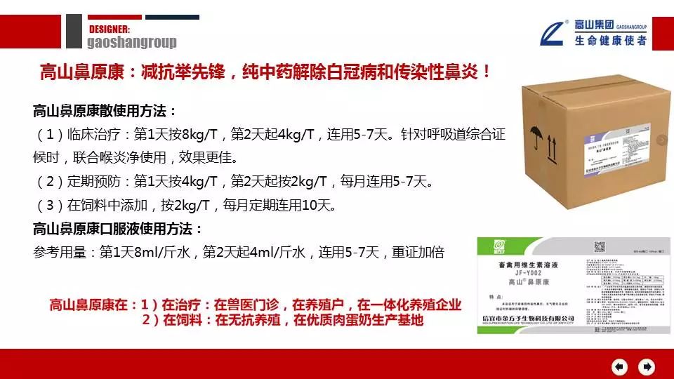 3、白冠病和传染性鼻炎。这两个病贯穿春夏秋冬季节,交错流行。从3月开始,长江流域,从5月开始,黄河流域发生较多。传播速度快,死亡率高,生产性能丢失多,是这个病的共性,损失巨大。用高山鼻原康,鼻原康发病即用,按4kg/吨,重证8kg/吨,连用5天,用了马上见效,与磺胺类药成本对比相差不大,且效果最确切。