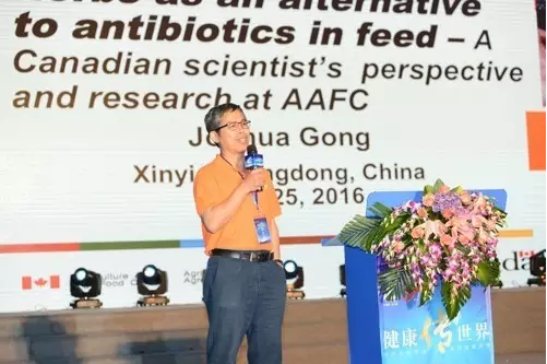 加拿大农业部研究员龚建华博士从自身视角出发,分享了加拿大畜牧业发展状况,总结中草药取代饲用抗生素的发展情况。龚博士长期积极探究饲用抗生素替代物的作用机理和开发应用,对中草药的取代效果提出了独到看法。