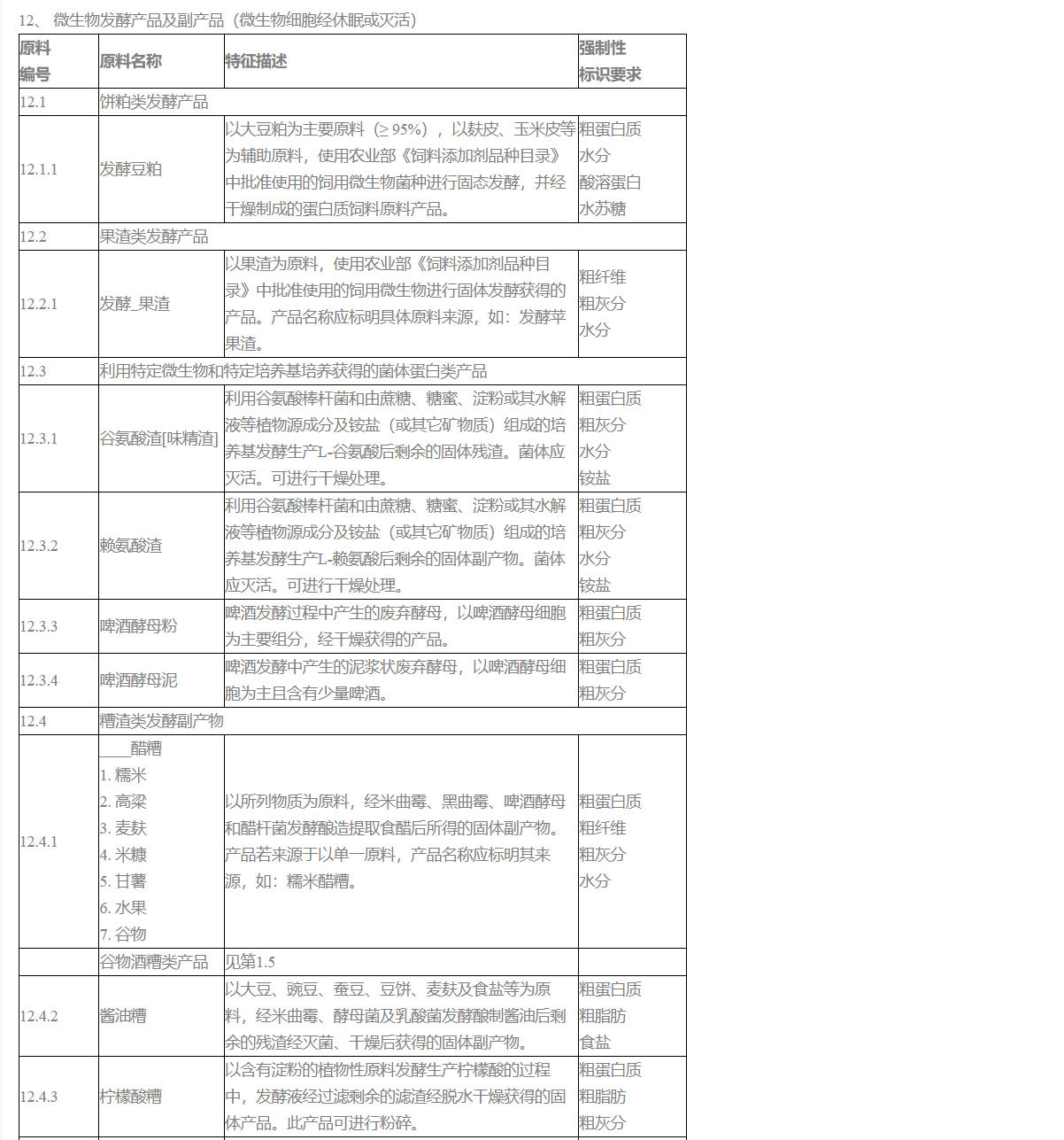 1.生产、经营用于工业饲料生产的饲料原料均应属于本目录规定的品种,工业饲料生产所使用的饲料原料也应属于本目录规定的品种,并且符合本目录第三部分的相关要求。