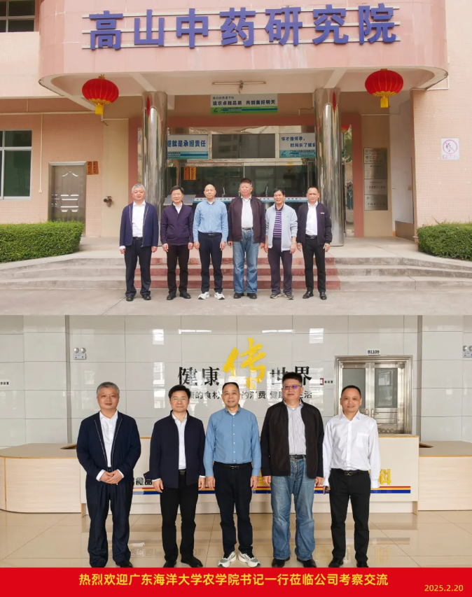 2025年2月20日,广东海洋大学农学院郑殿峰书记、马驿院长、王继全副书记一行莅临高山集团进行调研与交流指导工作。高山集团董事长梁其佳、沈永强书记/总工程师等陪同,先后参观了高山总部、金方子生产基地、东东食品城窦城蛋客文化体验中心(馆)等。