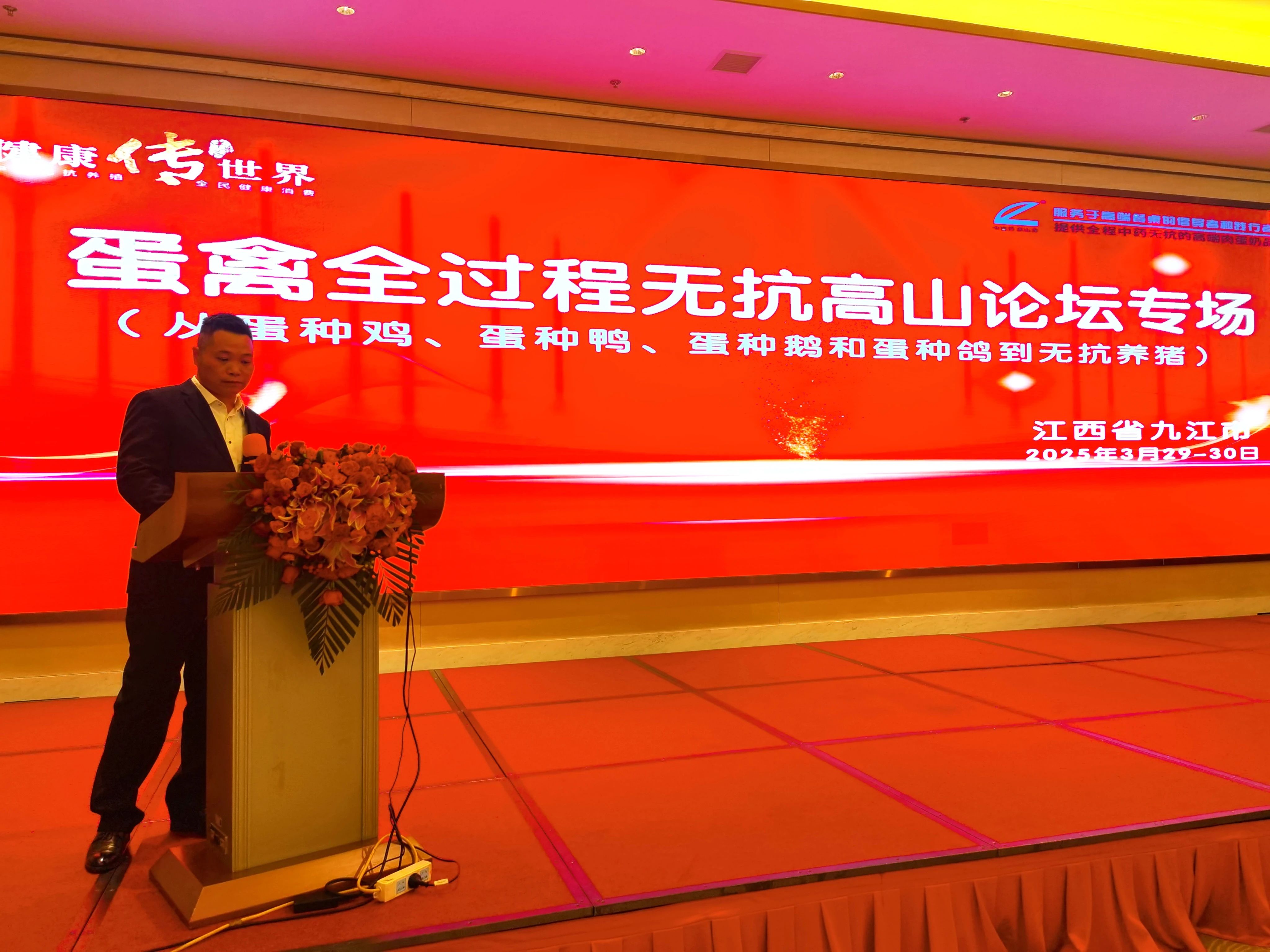 2025年3月29日,《蛋禽全过程无抗高山论坛专场》大会在江西九江濂溪开元名都酒店成功召开。大会以“高山中药全程无抗应用于畜禽生产中成为高端餐桌的倡导者和践行者”和“在实现蛋禽全过程无抗健康养殖上的高山实践”为主题。来自全国三十多个省区的营销经理、规模蛋禽养殖企业代表、客户嘉宾和公司管理人员近150人参加,年度优秀员工代表列席参加。大会由商学院培训师钟飞燕主持。