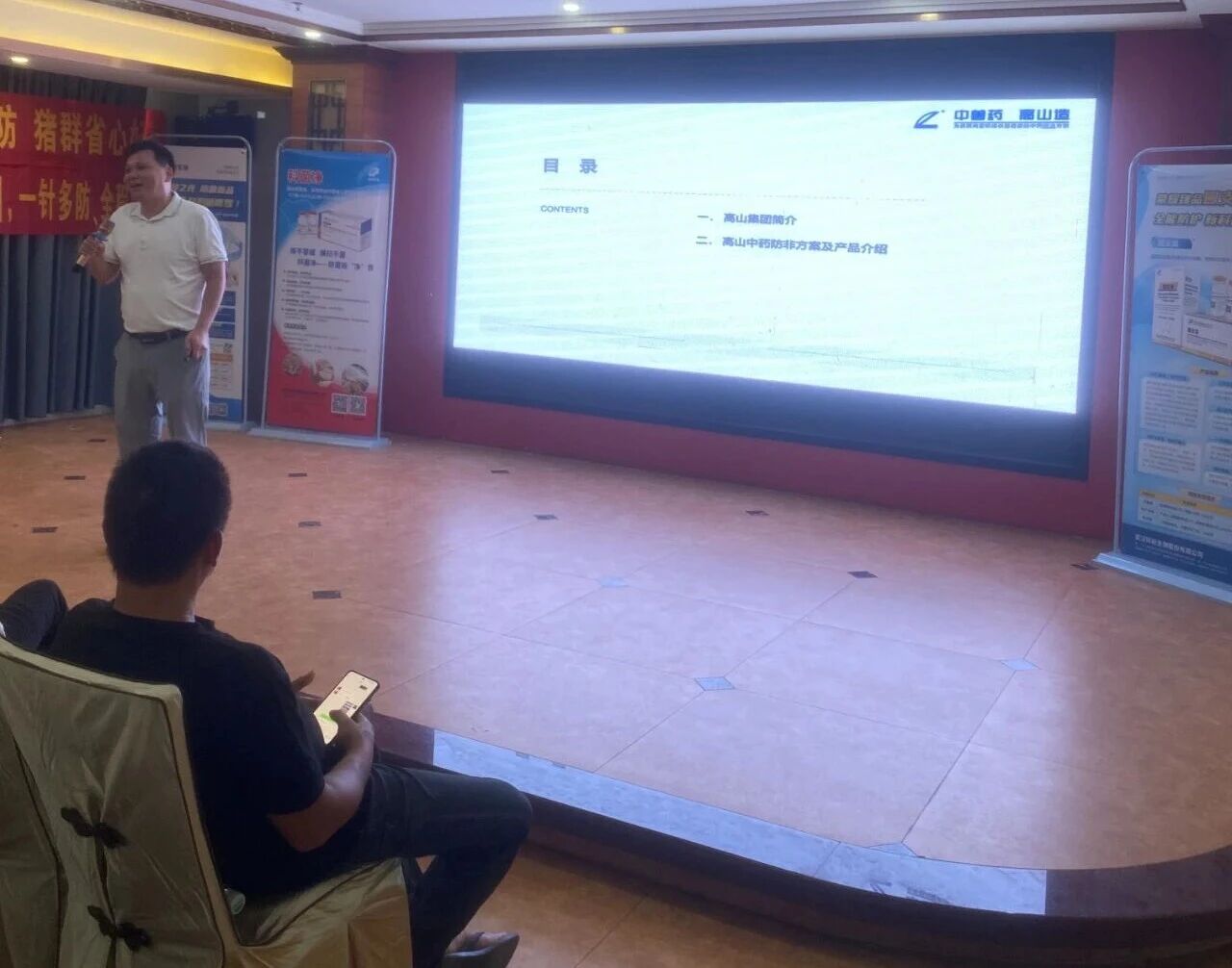 会上,高山集团营销经理黎达坚紧扣大健康养殖减抗主题带来了精彩分享。在《近期主要鹅病防控探讨》分享中,他指出鹅病的防控是一项系统工程,要从“养、防、检、治”做好防控,尤其要使用中药做好定期预防,如呼肠孤用六康、禽流感用正冠乐和安黄舒、鹅副黏病毒病用正冠乐和料磺1号、小鹅瘟用四逆汤和白头翁散、痛风用风道等。