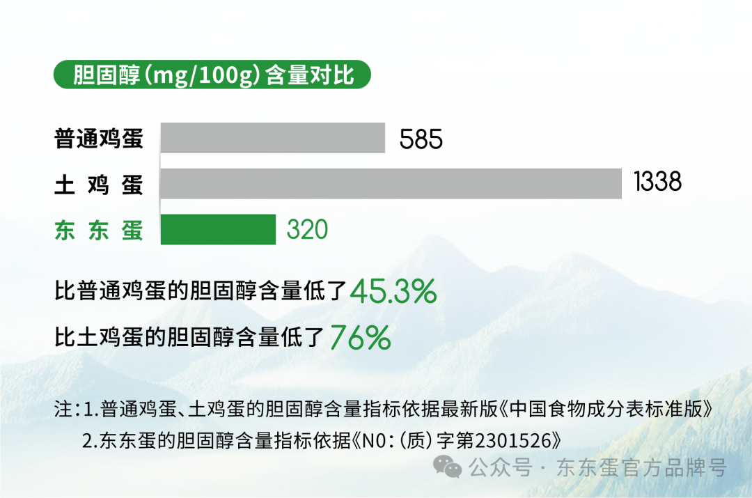 东东蛋业:从种苗、营养、防疫、管理和采用高山1+3保健方案及超前保健理念养殖,让畜禽不生病,实现全过程无抗健康养殖,东东蛋蛋品健康、优质、无腥味,胆固醇含量比普通鸡蛋低45.3%。