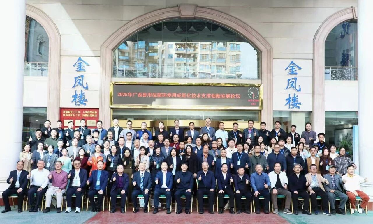 11月22日,“2025年广西兽用抗菌药减量化技术支撑畜牧业高质量发展论坛”在南宁凤凰宾馆盛大召开。此次论坛吸引200多家养殖企业代表踊跃参与,共同探寻畜牧业绿色转型的创新模式。高山集团董事长梁其佳、营销总监陈翠、董事长助理兼广西营销经理梁祖荣、广西营销经理黄桂梅、邓海强等出席了本次论坛。